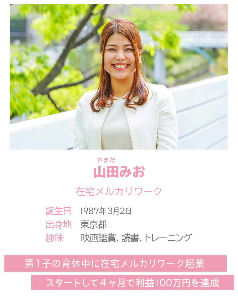と第1子の育休中に在宅で起業。初心者から在宅メルカリワークに取り組み、スタートして4か月で利益100万円を達成。